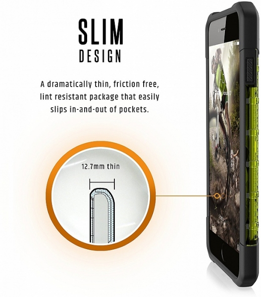 Чехол Urban Armor Gear Plasma для iPhone 7 Plus Urban Armor Gear Plasma представляет собой тонкую полупрозрачную защитную накладку для iPhone 7 Plus. Она имеет продуманную многослойную конструкцию, направленную на обеспечение безопасности девайса при различных механических воздействиях. Аксессуар плотно прилегает к смартфону, оставляя в свободном доступе все коммуникации. Он не влияет на процесс беспроводной зарядки, а также позволяет в полной мере использовать технологию Apple Pay. Чехол-накладка Urban Armor Gear Plasma имеет оригинальный дизайн и обеспечивает первоклассную защиту торцов и тыльной стороны iPhone 7 Plus. Его ультратонкая структура практически не увеличивает коммуникатор в размерах, однако при этом аксессуар способен защитить девайс даже при падении на бетон или асфальт. Чехол имеет усиленные углы и соответствует военному стандарту прочности USA Mil-Std 810G 516.6.