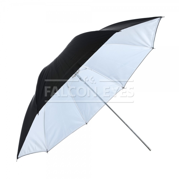 Фотозонт Falcon Eyes URK-60TWB Falcon Eyes URK-60TWB – комбинированный зонт 2 в 1: просветный/белый отражающий. Диаметр 122 см. Просветный зонт покрыт белой полупрозрачной тканью. Световой поток от вспышки попадает на ткань зонта, максимально рассеивается и, увеличивая площадь излучения, равномерно освещает объект съемки. Таким образом, резкий точечный свет, излучаемый при срабатывании фотовспышки, преобразуется в достаточно мягкий световой поток, излучаемый с большей площади. Белый отражающий зонт позволяет получить более контролируемый и направленный (по сравнению с просветным) равномерный свет и мягкие тени. Не искажает цветовую температуру источника освещения. Прочные эластичные спицы из стекловолокна и соединительные элементы из ударопрочного пластика для долговечного использования - спицы не ржавеют, сохраняют форму на протяжении всего срока эксплуатации, устойчивы к механическим воздействиям. Ткань из полиэстера обладает высокой износостойкостью.