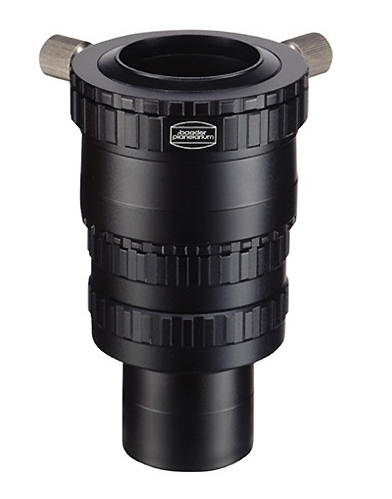Двухэлементная ахроматическая линза Барлоу в металлической оправе. Поднимает увеличение телескопа в 2 раза. Диаметр посадочной втулки 1,25 дюйма, имеется переходник на 2 дюйма. Поставляется с T-адаптером для присоединения фотокамеры. |