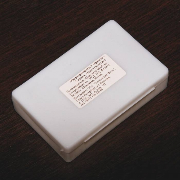 Набор из 5 образцов и 5 предметных пластиковых стекол. Габариты мм: 102х61х24