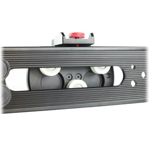 Площадка прочно фиксируется к рельсам при помощи колес с подшипниками, что позволяет даже перевернуть устройство, при этом, абсолютно не опасаясь за то, что камера может упасть. Система оснащена боковым тормозом, который позволяет зафиксировать слайдер в определенном положении.