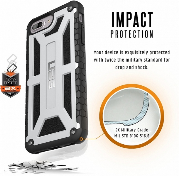 Ударопрочный чехол Urban Armor Monarch для iPhone 7 Plus / 6 Plus / 6S Plus (Platinum) Urban Armor Monarch представляет собой ударопрочный чехол премиального класса для Apple iPhone 7 Plus/6 Plus/6S Plus. Он удобно лежит в руке, не скользит и прочно сидит на смартфоне. Urban Armor Monarch прошел множественные проверок на ударопрочность, в результате которых было выяснено, что чехол при падении он принимает часть энергии удара на себя, потому с таким аксессуаром ваш iPhone под надежной защитой. Urban Armor Monarch изготовлен из поликарбоната, благодаря чему удобно лежит в руке и не скользит. Его конструкция включает в себя пять слоев защиты, среди которых есть сплав металла и резина. Чехол защитит ваш телефон не только от механических воздействий, но и обезопасит его от последствий попадания химических веществ и влаги. Благодаря большим вырезам на поверхности чехол не затрудняет доступ к интерфейсам смартфона.