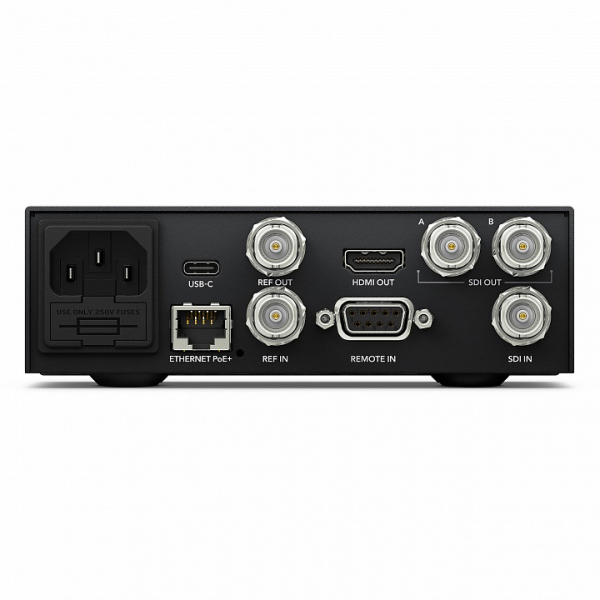 Видеорекордер HyperDeck Studio Mini Самая компактная вещательная Ultra HD-дека для записи и воспроизведения с 10-битным качеством, двумя слотами для карт SD/UHS-II и поддержкой протокола FTP. Вещательная дека HyperDeck Studio Mini имеет настолько компактные размеры, что ее можно взять с собой в абсолютно любое место. Несмотря на малый форм-фактор, она позволяет записывать и воспроизводить 10-битное видео в виде файлов ProRes с использованием доступных карт памяти SD и UHS-II. Устройство имеет интерфейс 6G-SDI с поддержкой всех форматов вплоть до 2160p/30, разъем HDMI 2.0 для мониторинга, два слота для накопителей и синхровыход со встроенным генератором опорного сигнала для работы с последовательным подключением. Двухканальный выход 6G-SDI обеспечивает раздельный вывод материала в 720 или 1080 HD (4:4:4:4) для кеинга. HyperDeck Studio Mini оснащается встроенным блоком питания, а также портами RS-422 для удаленного управления и PoE+ для передачи данных по протоколу FTP. Широкий функционал. Запись и воспроизведение с вещательным качеством HyperDeck Studio Mini идеально подходит для сохранения мастер-копии во время многокамерной съемки или записи отдельного сигнала для последующего монтажа. Деку также можно использовать для вывода готового материала непосредственно в эфир или на широкоэкранный телевизор с HDMI-интерфейсом. Благодаря функции синхронизации несколько таких устройств будут обеспечивать безупречную передачу изображения на цифровые панели высокого разрешения. В конфигурации с микшером этот мини-рекордер также позволяет накладывать вещательную графику вместе с альфа-каналом поверх живого видео в режиме реального времени! Прочный и стильный корпус. Полнофункциональная дека с исключительно малым форм‑фактором HyperDeck Studio Mini имеет два слота для карт памяти, набор разъемов профессионального уровня, порт Ethernet и встроенный блок питания, при этом ширина корпуса составляет всего 140 мм. Если нужно создать собственную конфигурацию оборудования с другими устройствами, для установки используют полку Teranex Mini Rack Shelf. Так, для работы с аналоговым материалом достаточно добавить конвертер Teranex Mini Analog to SDI на входе и Teranex Mini SDI to Analog на выходе, а вывод одного сигнала на восемь интерфейсов обеспечит модель Teranex Mini SDI Distribution 12G. Деку также можно поместить на стол или любую другую подходящую поверхность. Это самое гибкое решение с функционалом профессионального рекордера! Разъемы профессионального уровня. 6G-SDI для SD, HD и Ultra HD Благодаря разъемам 6G-SDI решение совместимо с любыми камерами, мониторами и SDI-коммутаторами, поддерживая все разновидности SD-, HD- и Ultra HD-форматов вплоть до 2160p/30. Предусмотрены SDI-вход, синхровход и два SDI-выхода, которые можно использовать для двухканального вывода изображения или кеинга. Наличие интерфейса HDMI обеспечивает подключение рекордера к широкоэкранным телевизорам, цифровым проекторам и другой технике. Кроме того, есть порты RS-422 для удаленного управления и Ethernet для загрузки файлов из локальной сети, а также встроенный блок питания 110-240 В. В комплект поставки входит пакет SDK и руководство по эксплуатации с описанием протокола, который позволяет интегрировать HyperDeck Studio Mini с другим оборудованием и программными продуктами. Привычный интерфейс управления. Простой и понятный рабочий процесс HyperDeck Studio Mini имеет традиционные для видеомагнитофона органы управления, в том числе кнопку перемот